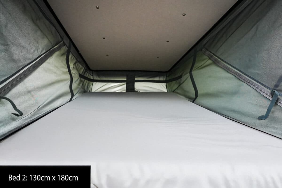 - Rear bed (transverse): 197 cm x 157 cm