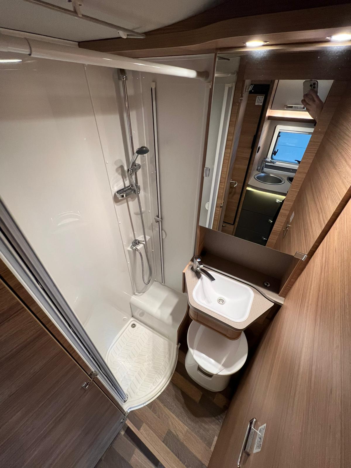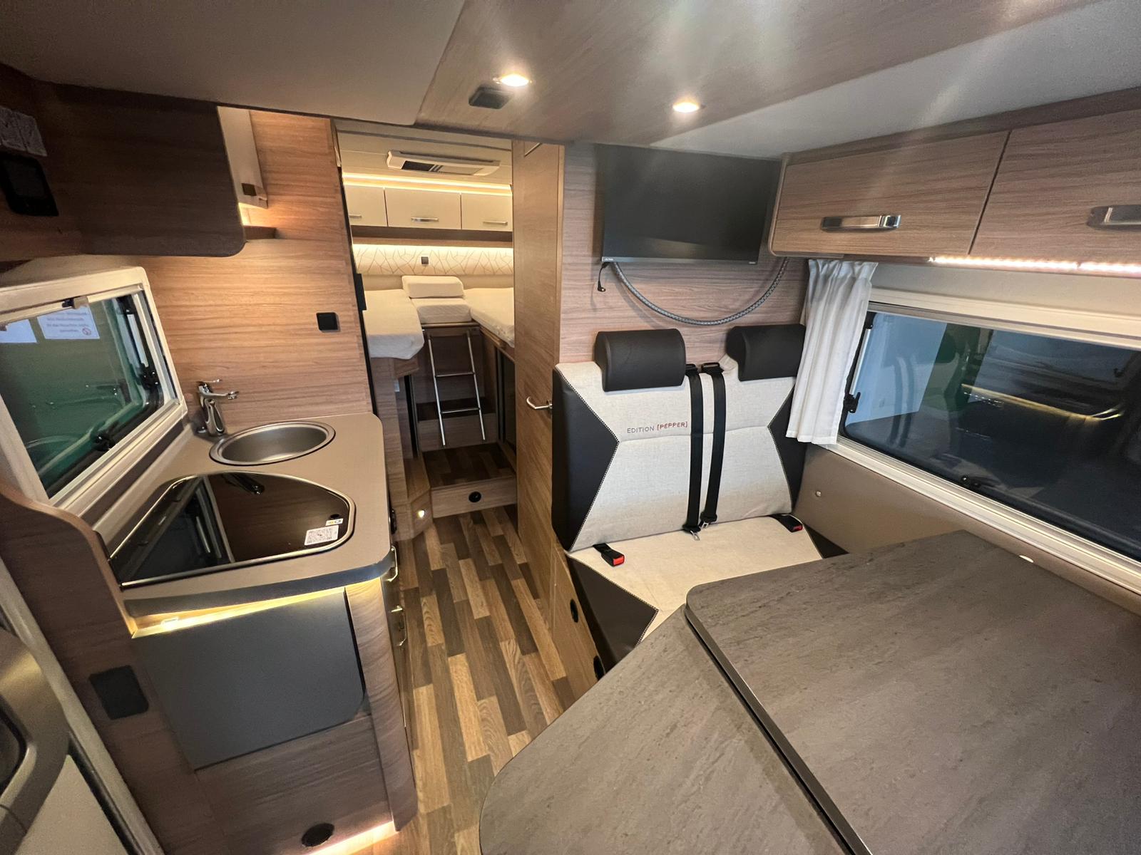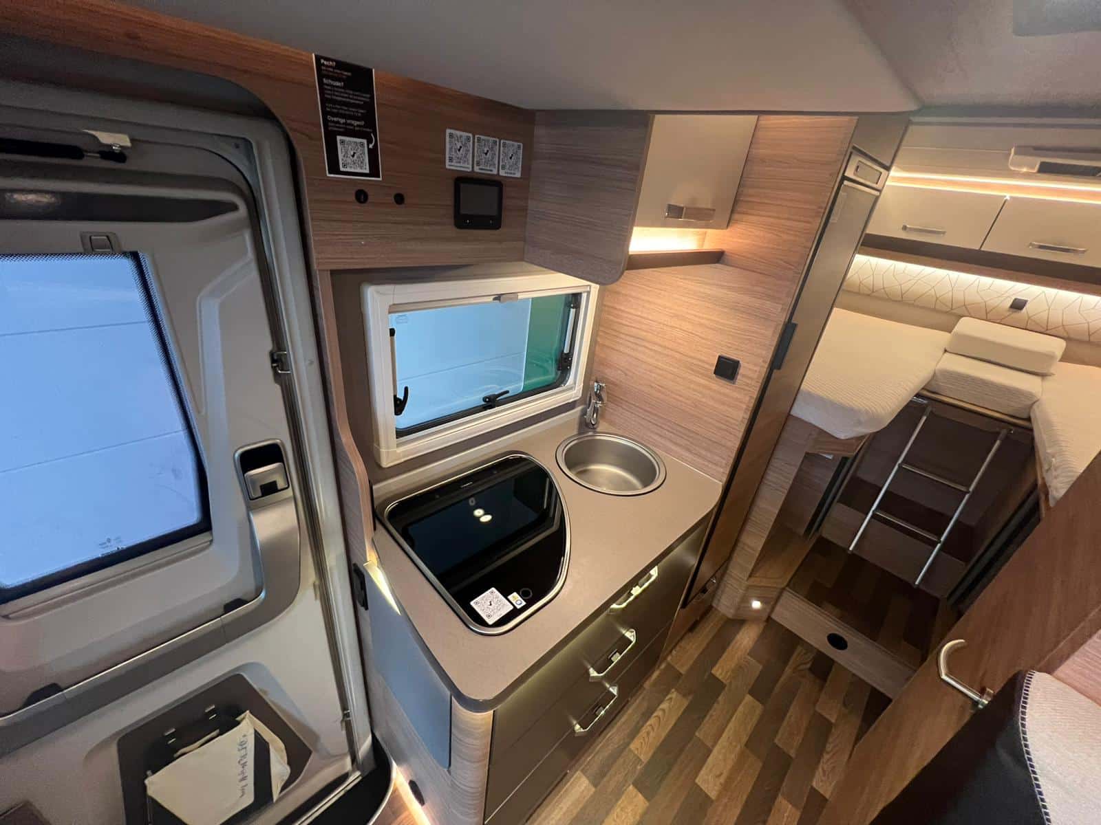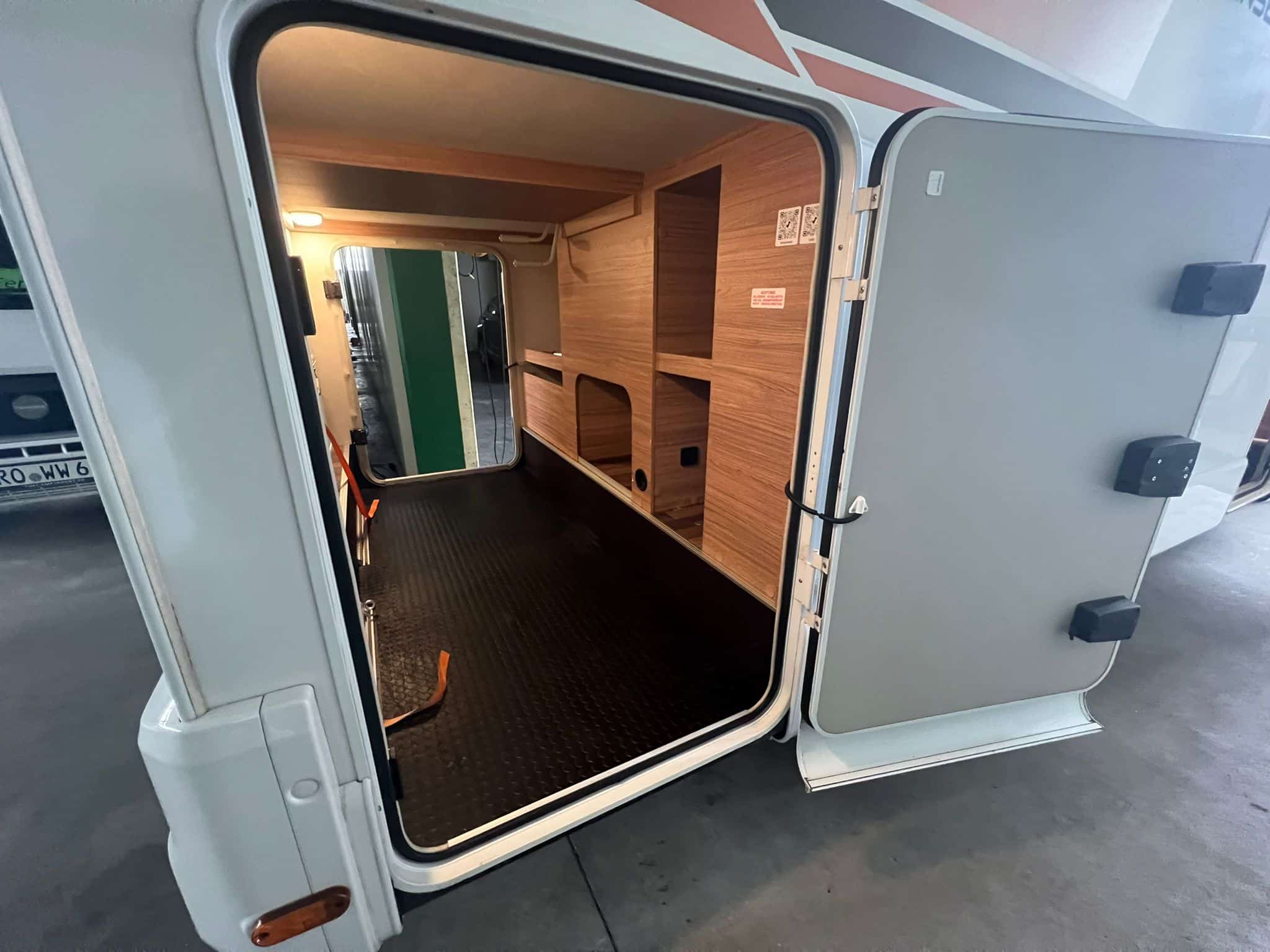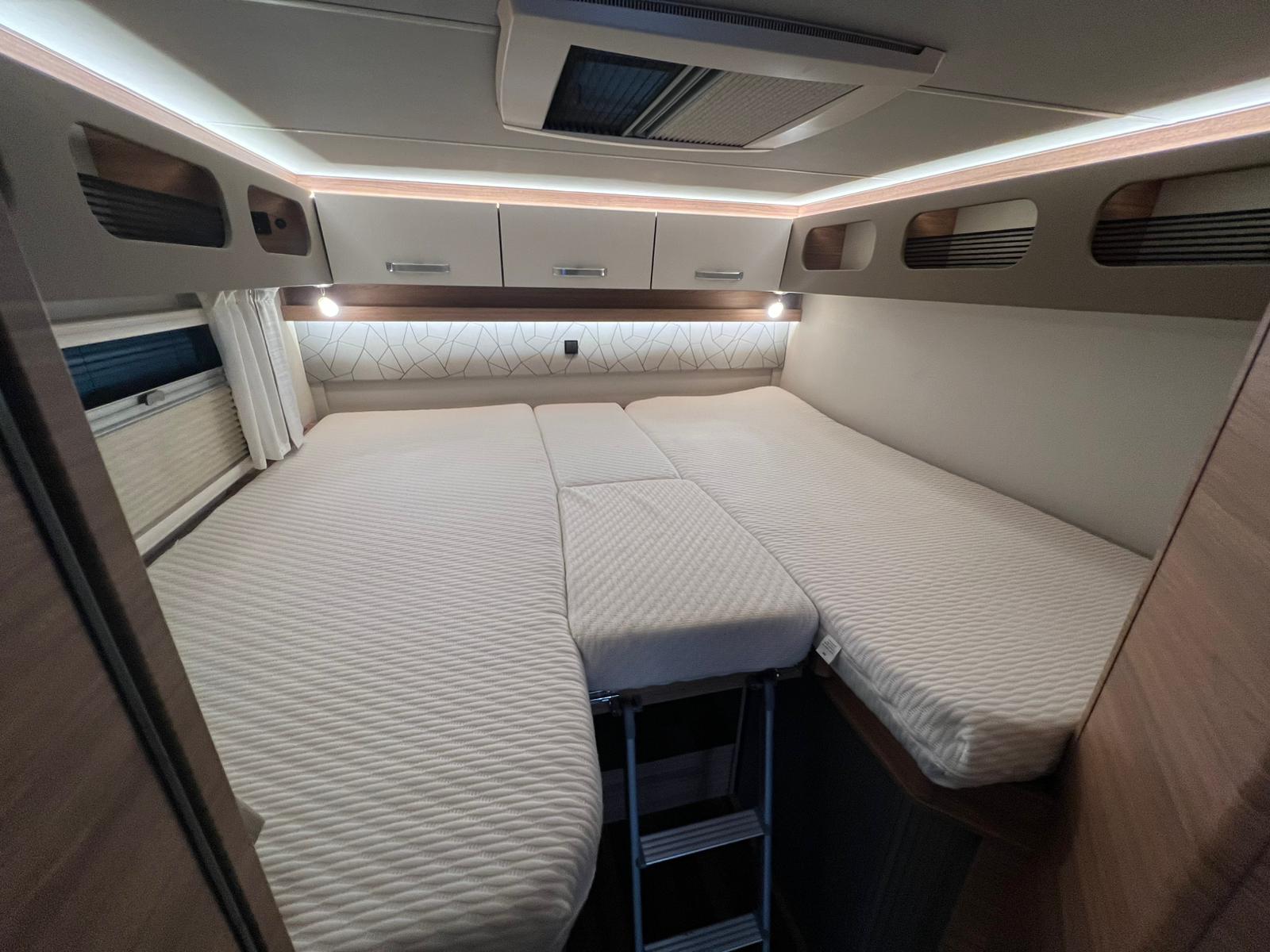 - Schlafplätze 4 Längsbetten und Hubbett (Quer)