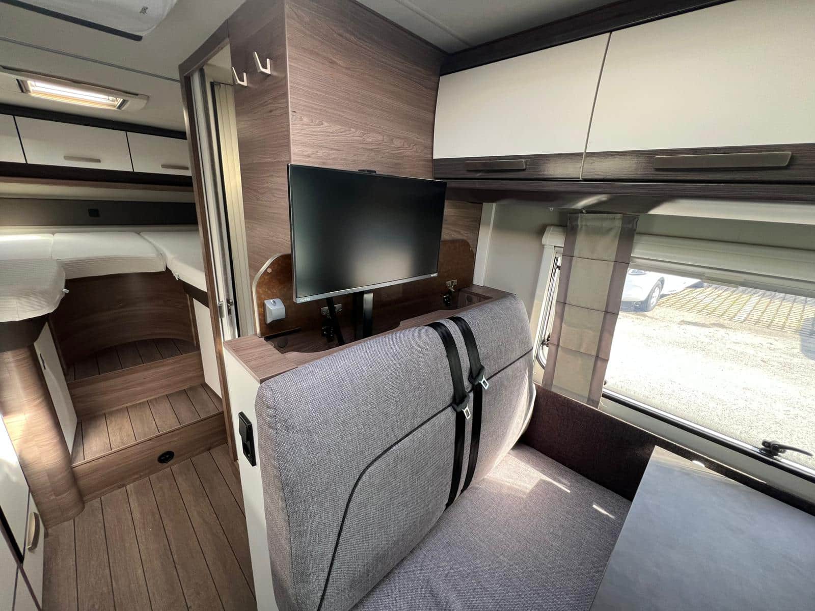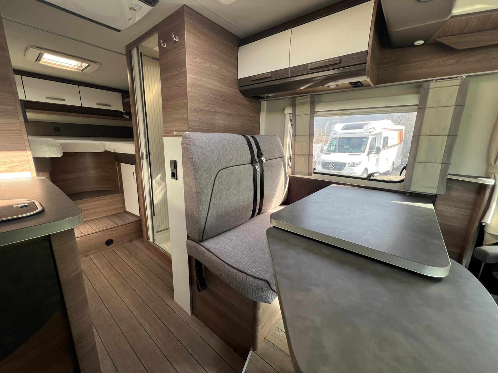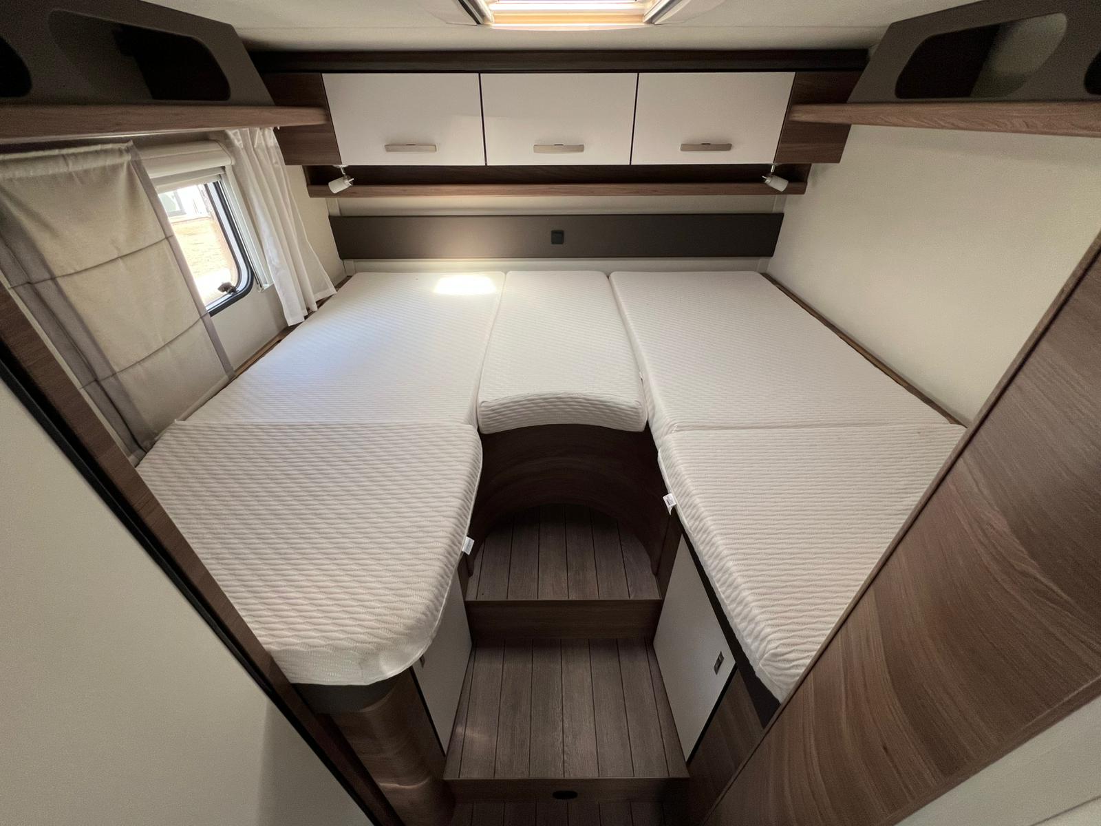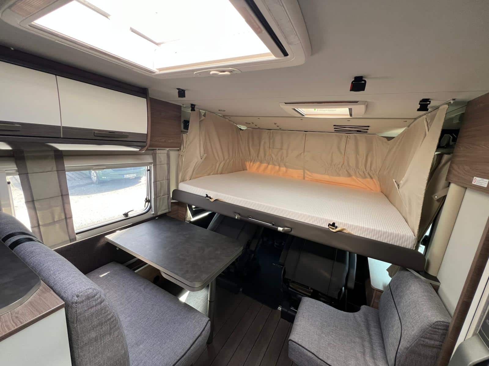 - Schlafplätze 4 Längsbetten und Hubbett vorne