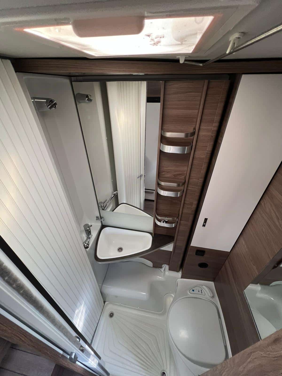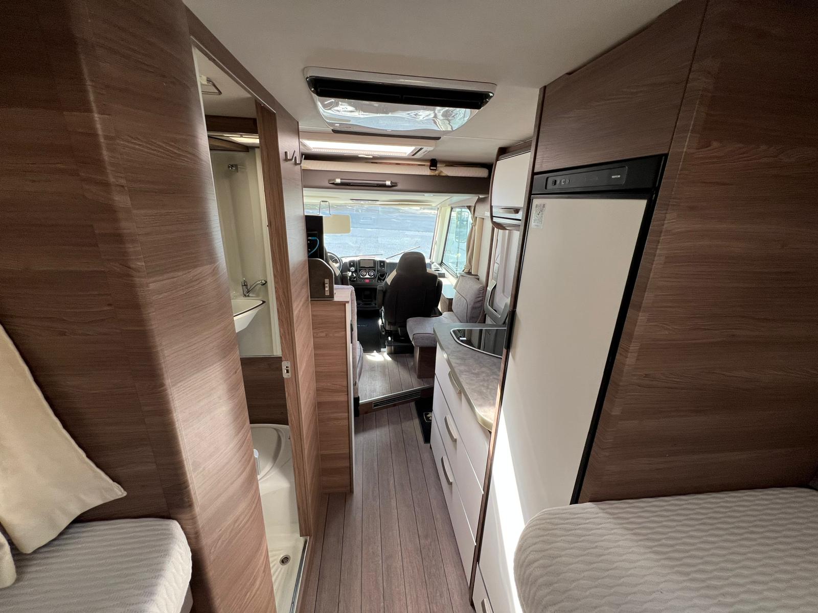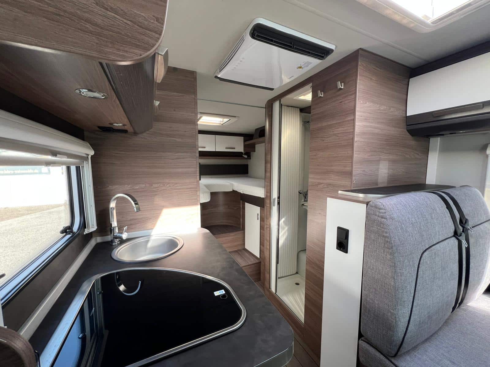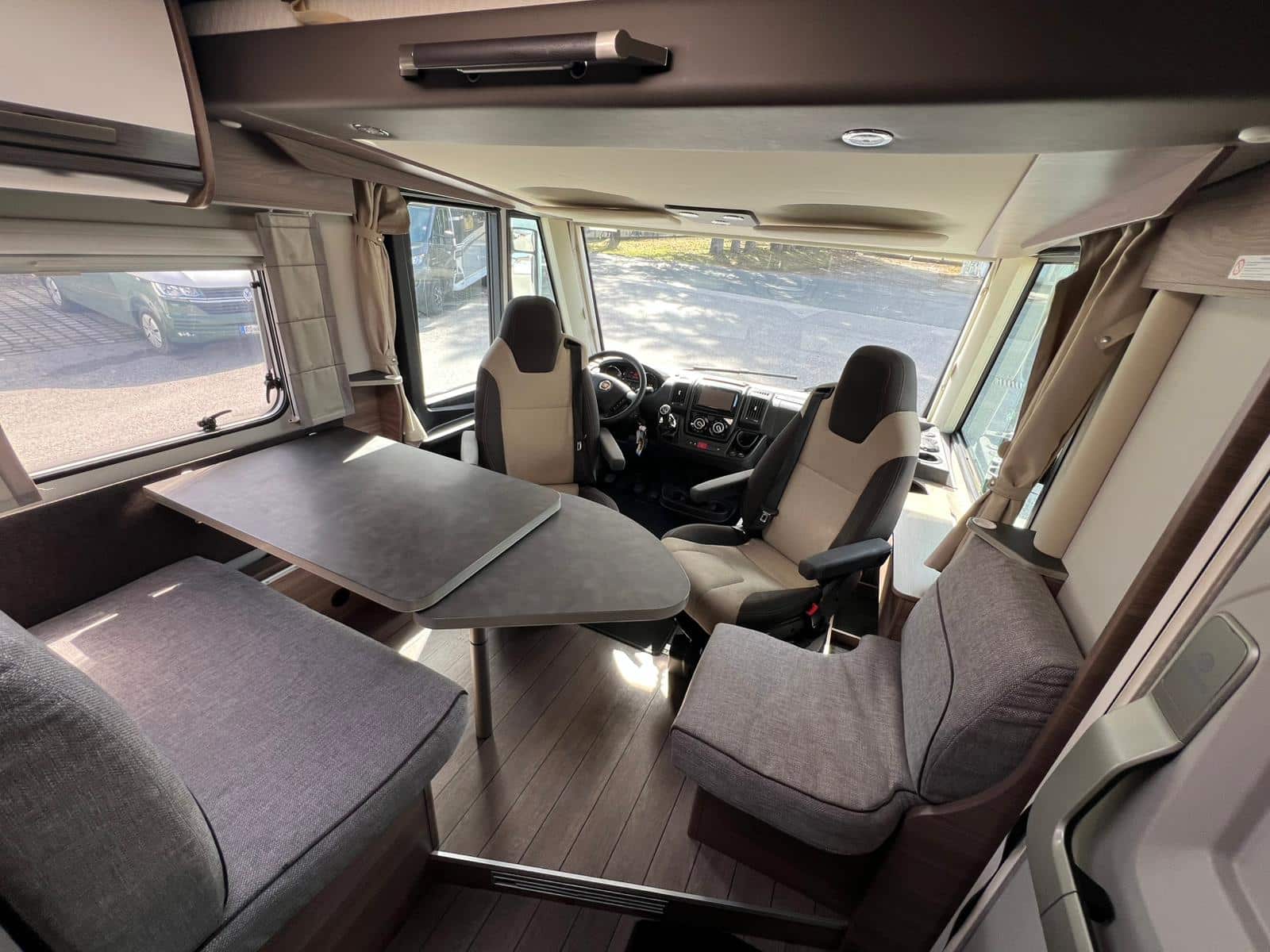 - Schlafplätze 4 Längsbetten und Hubbett vorne