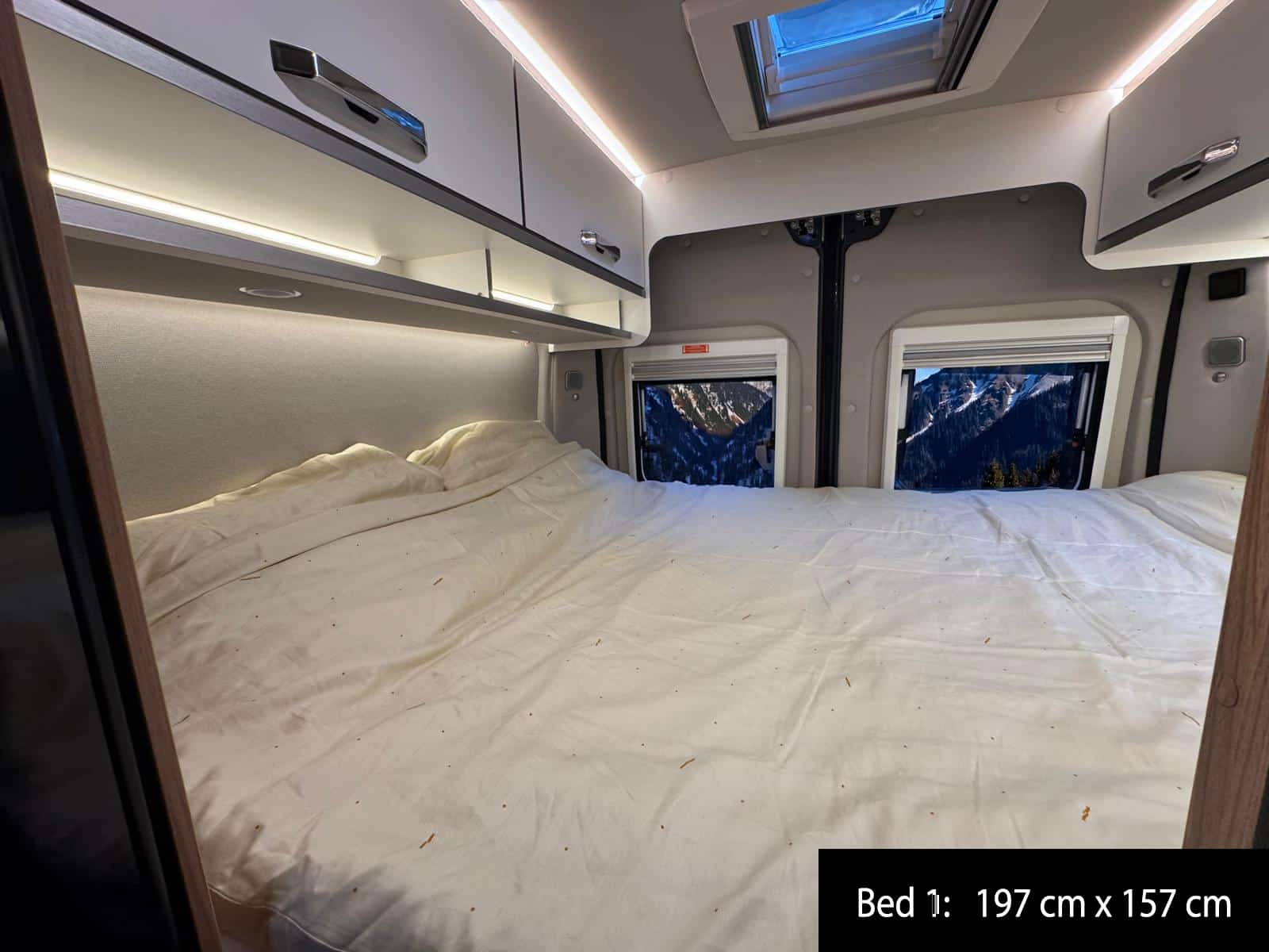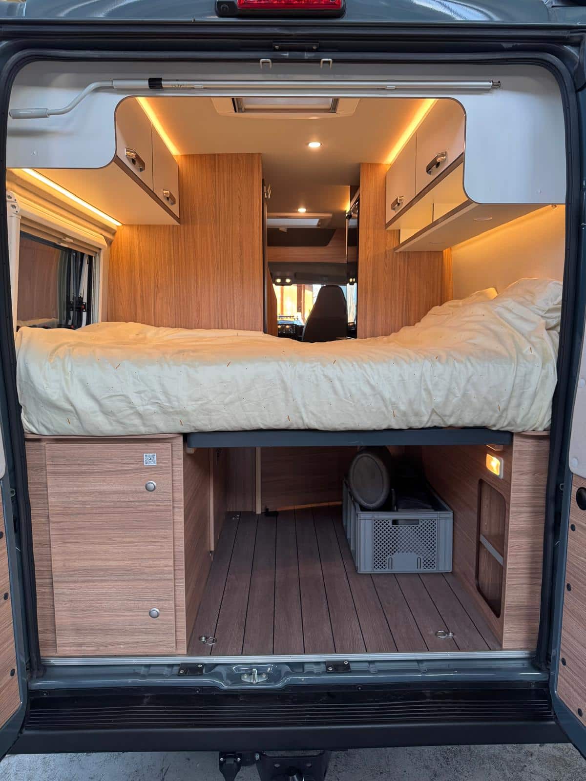 The Expedition steht für neue Eindrücke und Erfahrungen. Im Heck ist das Fahrzeug mit einem komfortablem Doppelbett ausgestattet. Unterwegs kannst du dein Telefon aufladen, hast immer einen Kühlschrank zur Verfügung und eine Kalt- und Warmwasserversorgung sowie eine Küche mit 2-Flammen-Gaskocher und eine Standheizung.