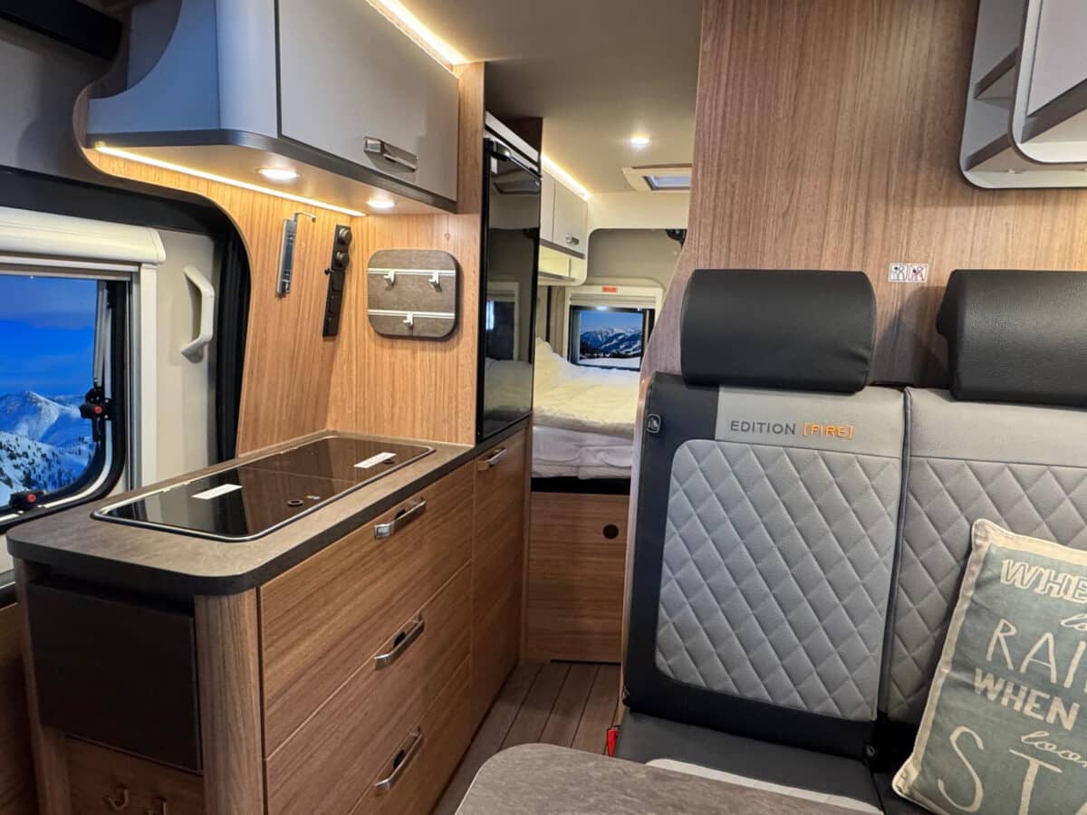 The Expedition steht für neue Eindrücke und Erfahrungen. Im Heck ist das Fahrzeug mit einem komfortablem Doppelbett ausgestattet. Unterwegs kannst du dein Telefon aufladen, hast immer einen Kühlschrank zur Verfügung und eine Kalt- und Warmwasserversorgung sowie eine Küche mit 2-Flammen-Gaskocher und eine Standheizung.